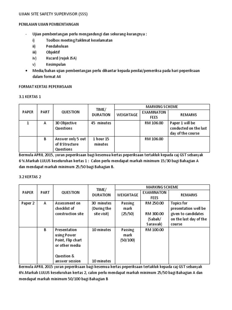 Contoh Soalan Exam Sss. Peperiksaan Hygiene Technician 2 HT2 9. SITE SAFETY SUPERVISOR SSS 10 OBJECTIVE At the end of the course the participant will be able to.